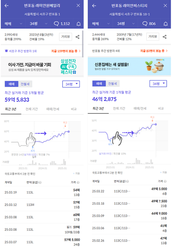 - 주변 시세 리딩 단지: 래미안 원베일리, 아크로리버파크