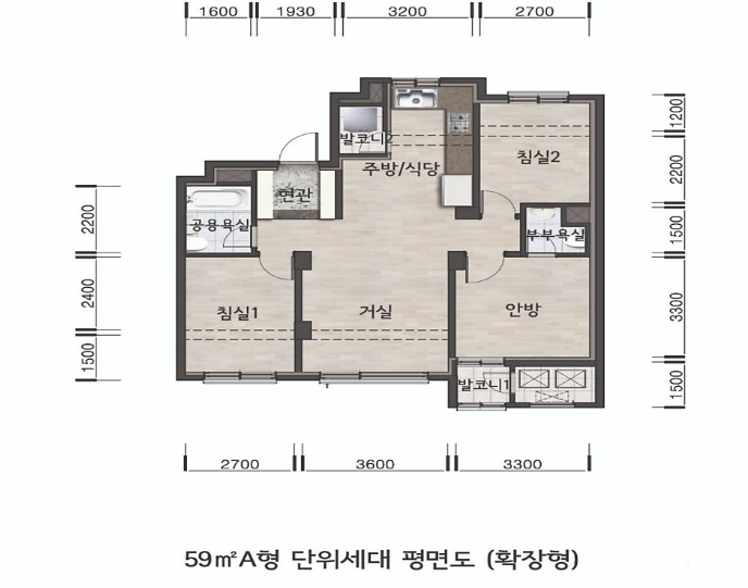 59㎡ 타입은 3Bay 구조, 84㎡는 4Bay 구조로 구성되어 실용성과 공간 효율이 뛰어납니다.