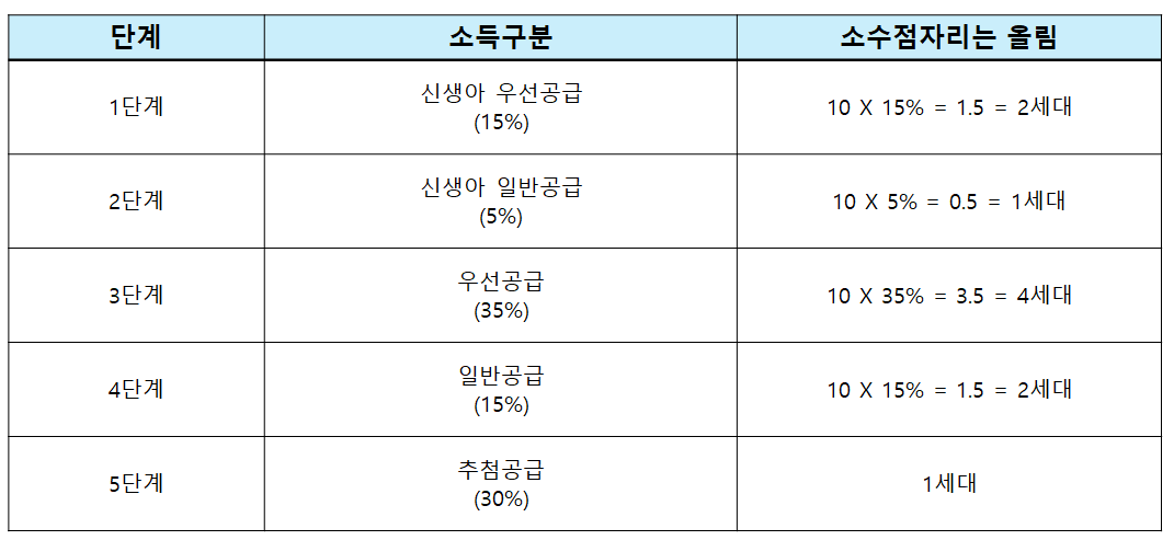 다만, 10개의 세대가 신혼특공으로 공급이 된다고해서 3개의 세대가 신혼특공 추첨제 물량은 아니다!