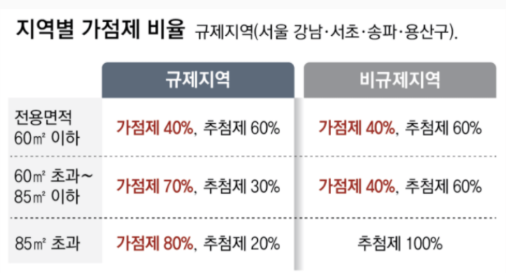 비규제지역 → 전 평형 60% 추첨, 40% 가점